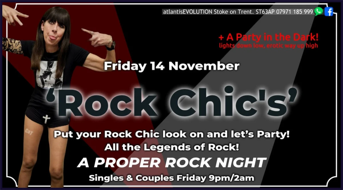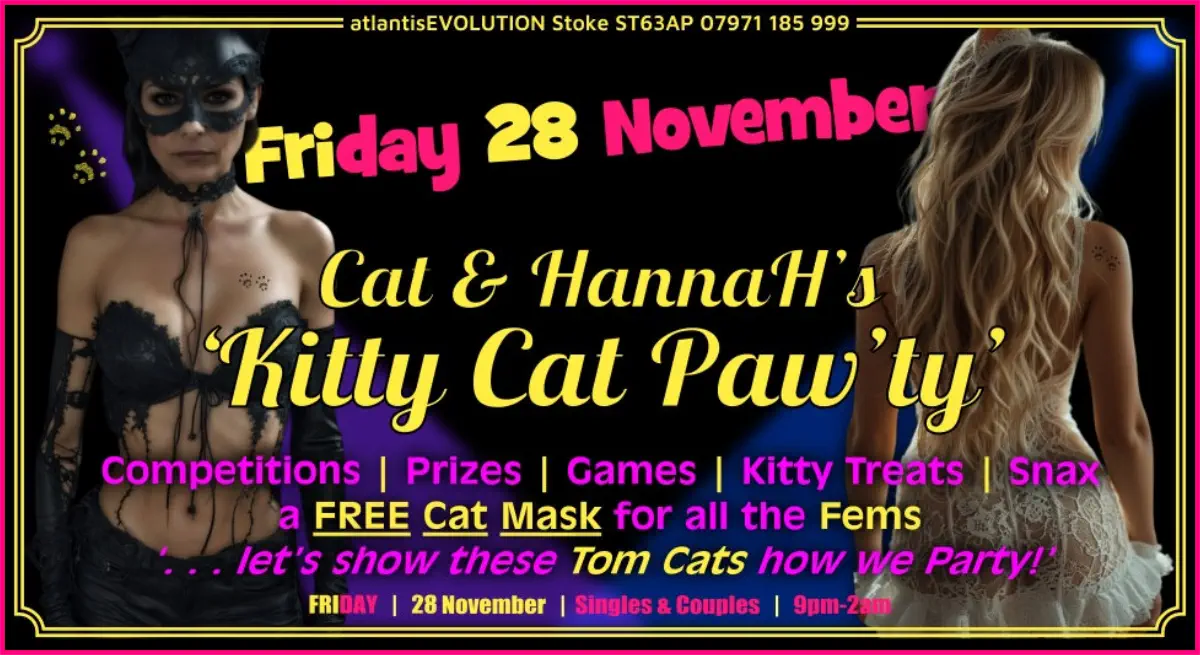 atlantisEVOLUTION Swingers Club. Burslem. Stoke on Trent. VOTED ‘THE’ No 1 NIGHT CLUB THEMED SWINGERS CLUBS IN THE UK. And one of the UK's top Swingers clubs.07971 185 999We also hold Fetish Events. Swingers Club and Adult Parties. Fab Swingers Parties. Greedy Girls Parties. BDSM & Fetish EventSDC Hotties Parties. Hotwives, Hot Wives, atlantisEVOLUTION. Swingers Clubs. Swinger Club. Swinging Adventures. Swing Stoke. Serving Walsall. Birmingham. Darlaston. Hanley. Swing Club. Midlands. Swingers Clubs Staffordshire. Greedy Girls Staffordshire.