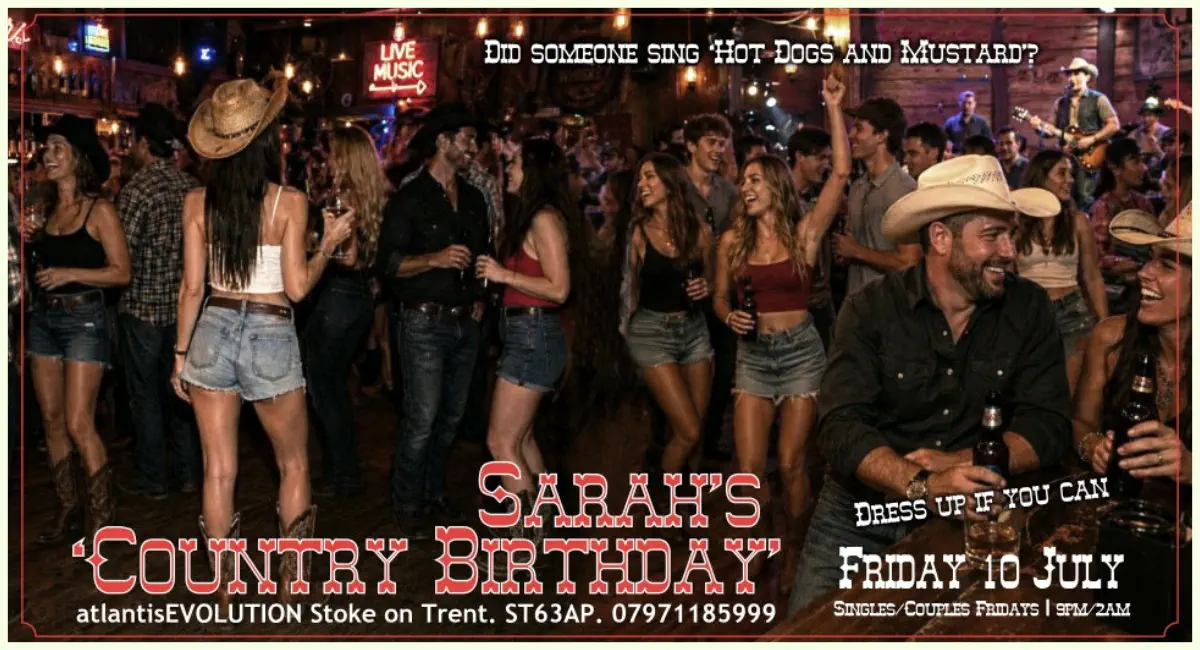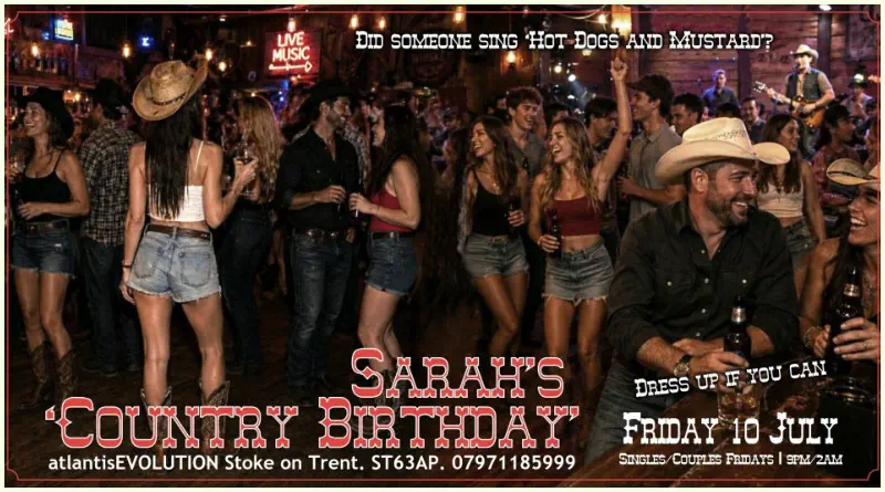 Friday 10JulySarah’s‘Country Birthday’Hot Diggity DawgHot Dog SupperAll the Clubland ClassicsSingles and Couples Friday9pm-2amBring Proper ID to Join