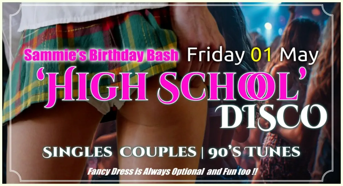 Friday 01 MaySammie’s Birthday‘HIGH SCHOOL DISCO’90’s MusicSingles and Couples FridayCouples and Single Fems Saturday9pm-2am