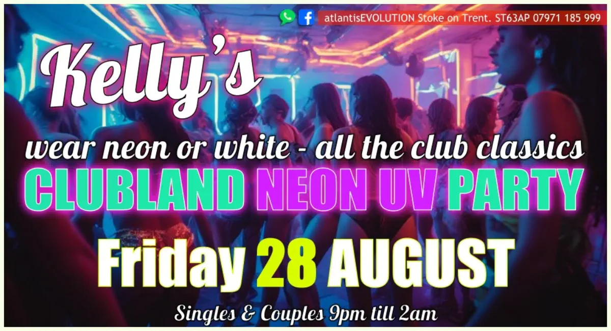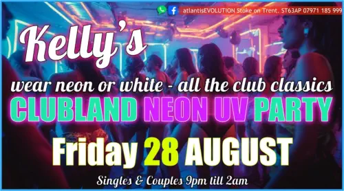 Friday 28AugustKelly’s BirthdayCLUBLAND NEON UV PARTYAll the Clubland ClassicsSingles and Couples Friday9pm-2amBring Proper ID to Join