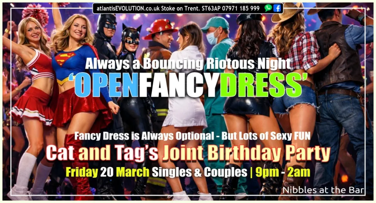 atlantisEVOLUTION Swingers Club. Burslem. Stoke on Trent. VOTED ‘THE’ No 1 NIGHT CLUB THEMED SWINGERS CLUBS IN THE UK. And one of the UK's top Swingers clubs.atlantisEVOLUTIONWe also hold Fetish Events. Swingers Club and Adult Parties. Fab Swingers Parties. Greedy Girls Parties. BDSM & Fetish EventSDC Hotties Parties. Hotwives, Hot Wives, atlantisEVOLUTION. Swingers Clubs. Swinger Club. Swinging Adventures. Swing Stoke. Serving Walsall. Birmingham. Darlaston. Hanley. Swing Club. Midlands. Swingers Clubs Staffordshire. Greedy Girls Staffordshire.